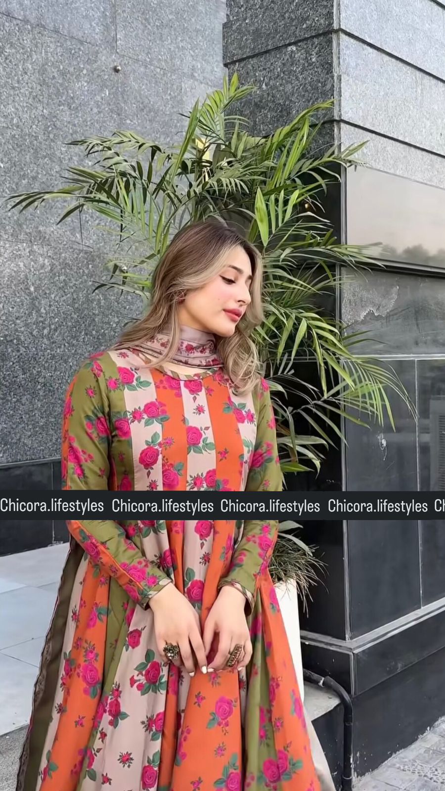 Fabric : Muslin ( Premium Quality ) Style : Frock Style 3-Piece Suit ( Frock...