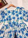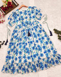 Introducing our latest summer essential: the Grey Floral Dress. Crafted for comfort, this easy-breezy dress features a delightful blue floral print. With a charming front knot detail and playful frill at the bottom, it’s perfect for sunny days. Knot accents on the sleeves add an extra touch of style.