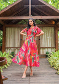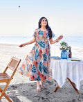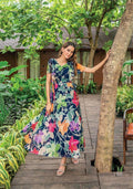 Chicora Presents Long Printed Gown with Fancy Sleeves Pattern