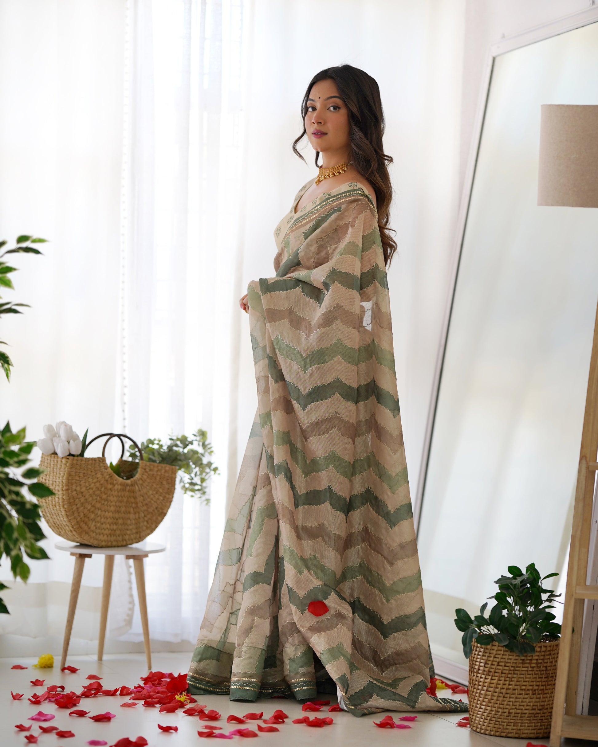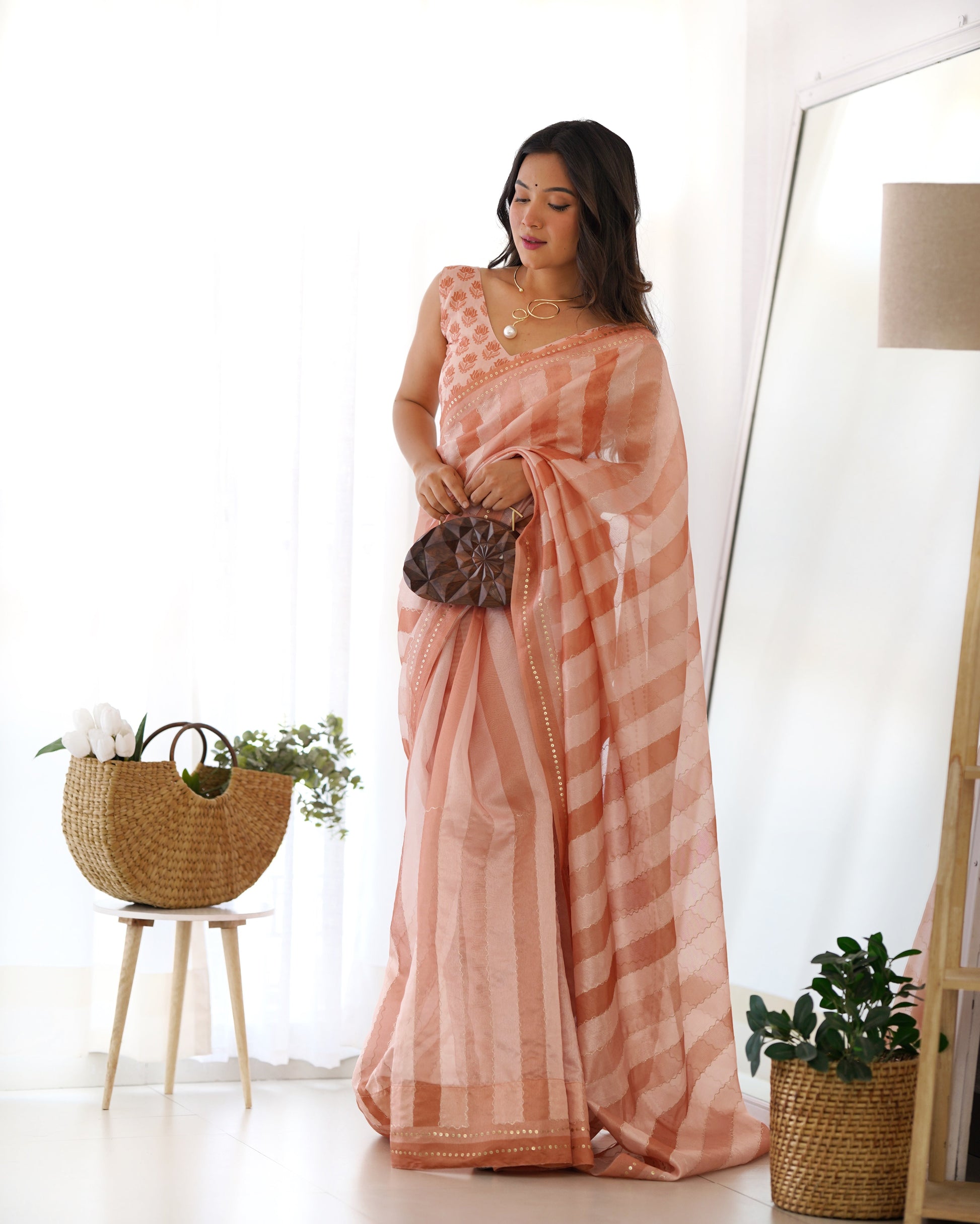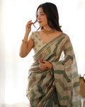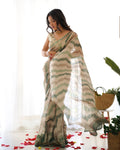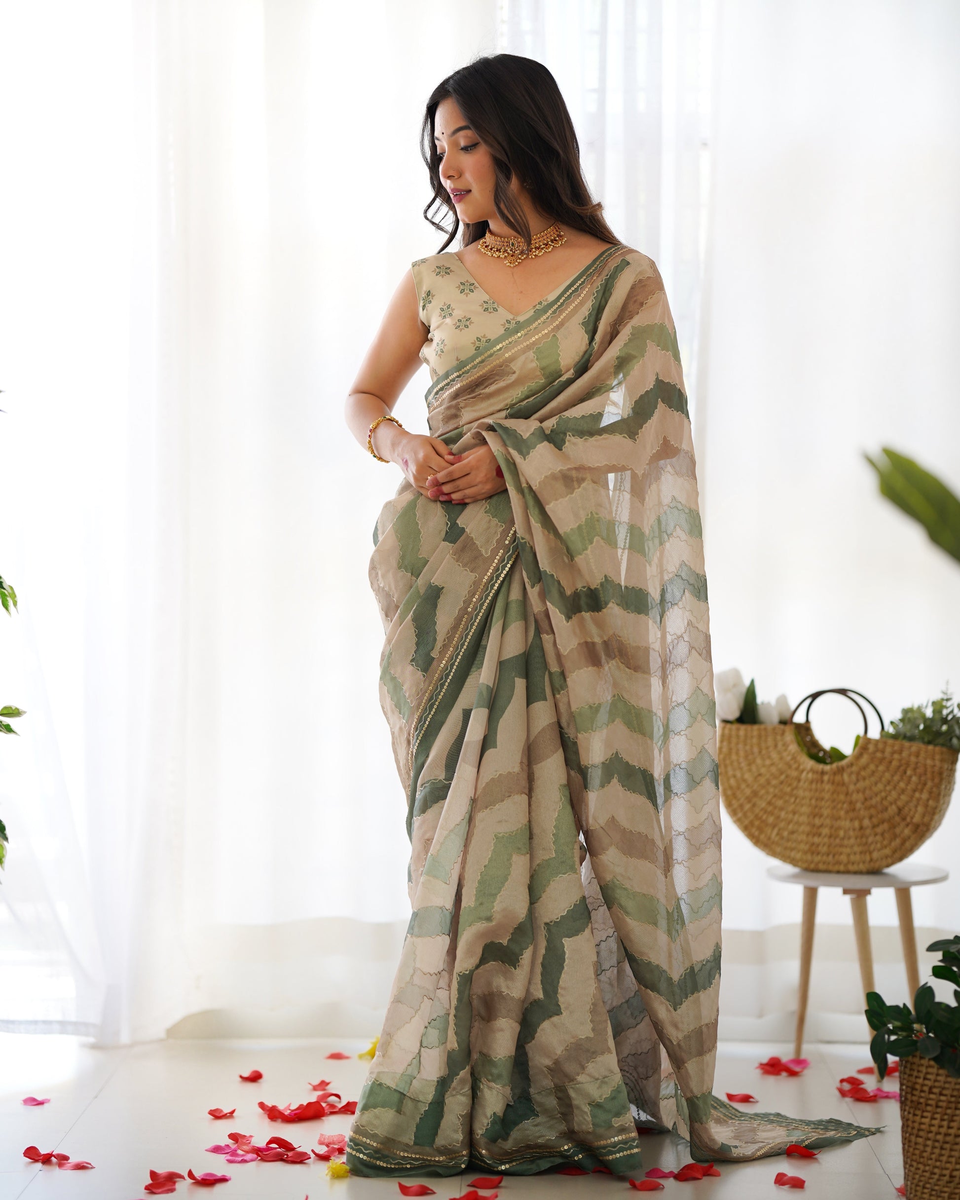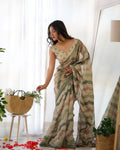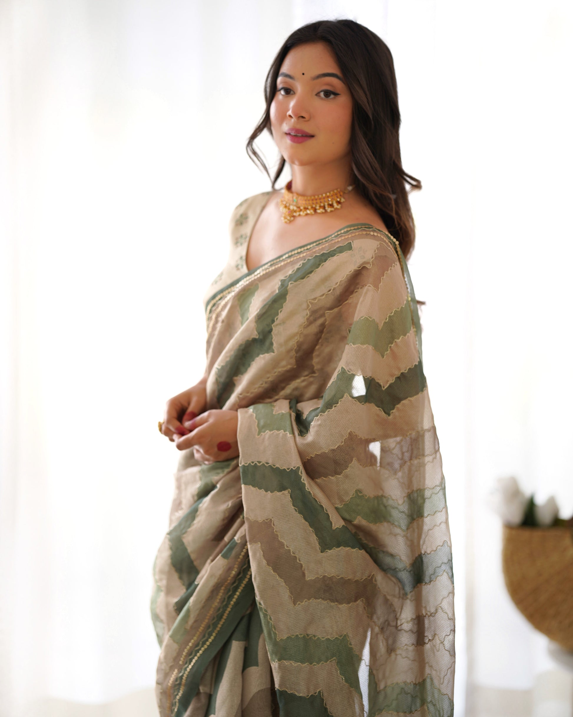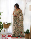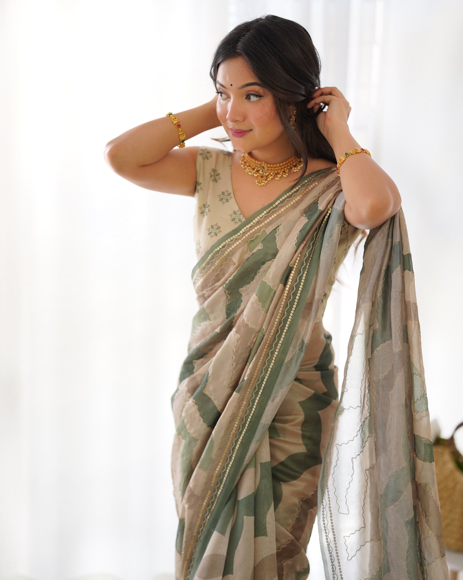 | Pattern | Digital printed saree with matt sequin khatha work & Digital printed Blouse |
