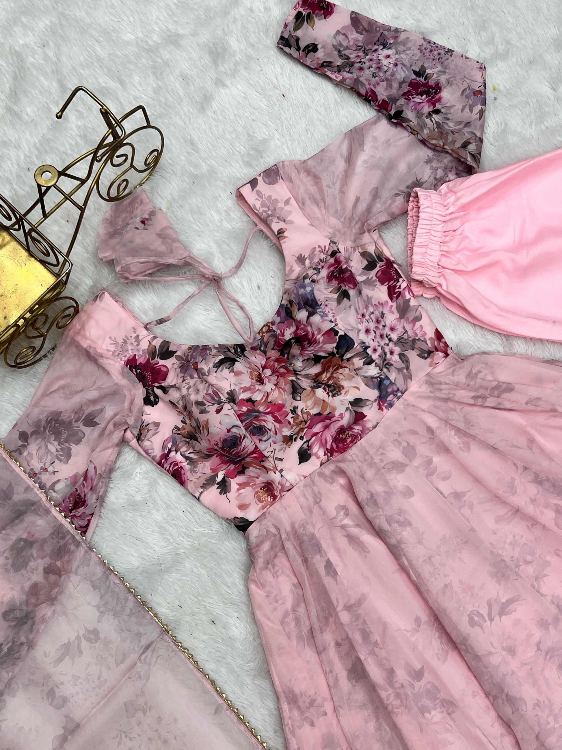 | Fabric detail:- | heavy pure soft organja silk print gown |