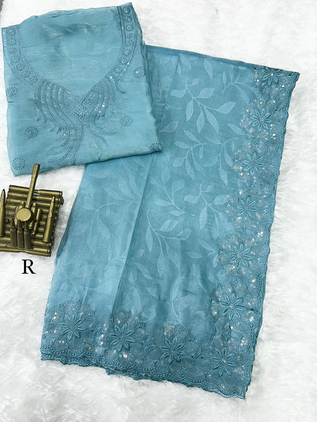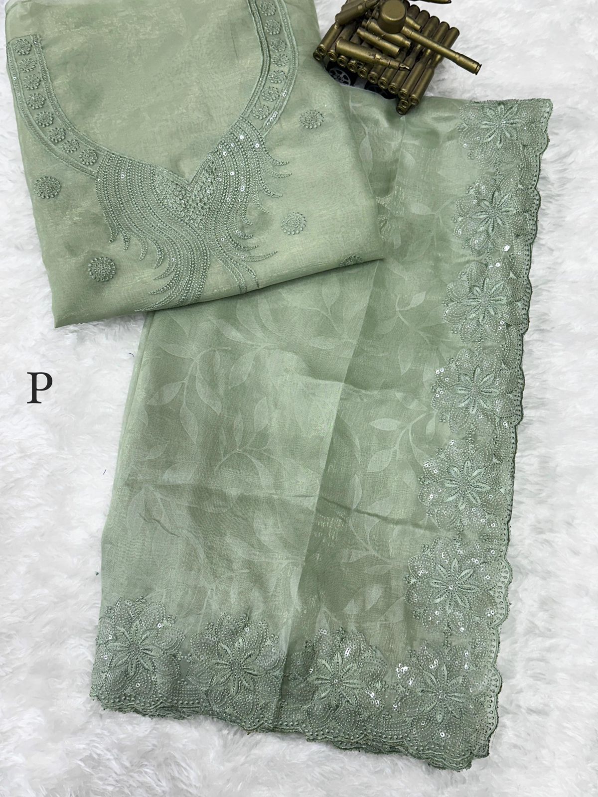 Self ambose with sequin cut work. tone to tone thread work with sequins. |