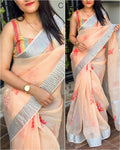 flower printed saree with crush effect & silver zari pallu and border. |