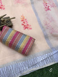 flower printed saree with crush effect & silver zari pallu and border. Minakari multi colored jacquard weave. |