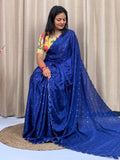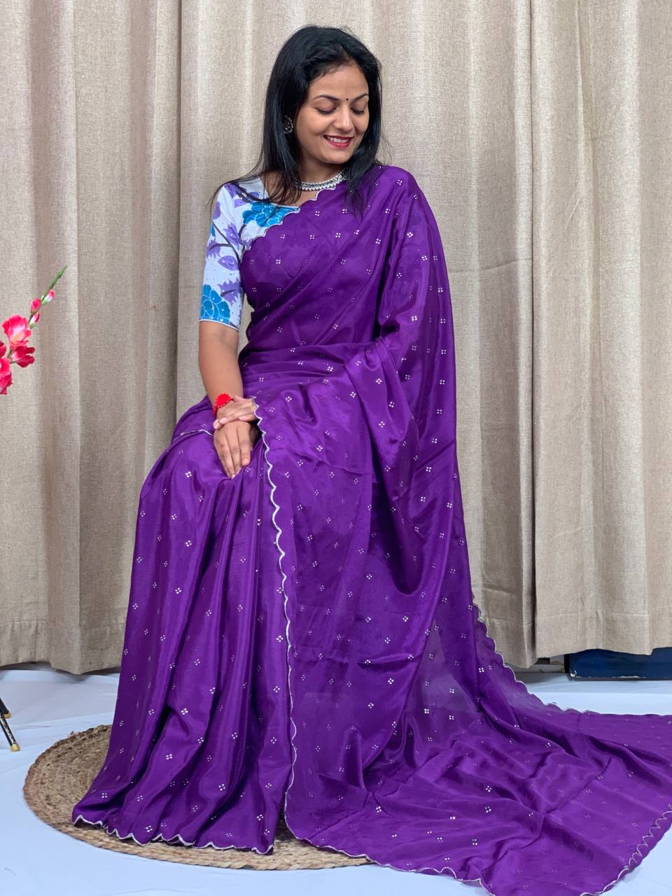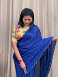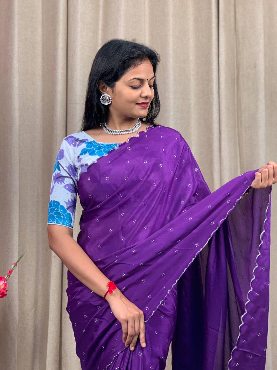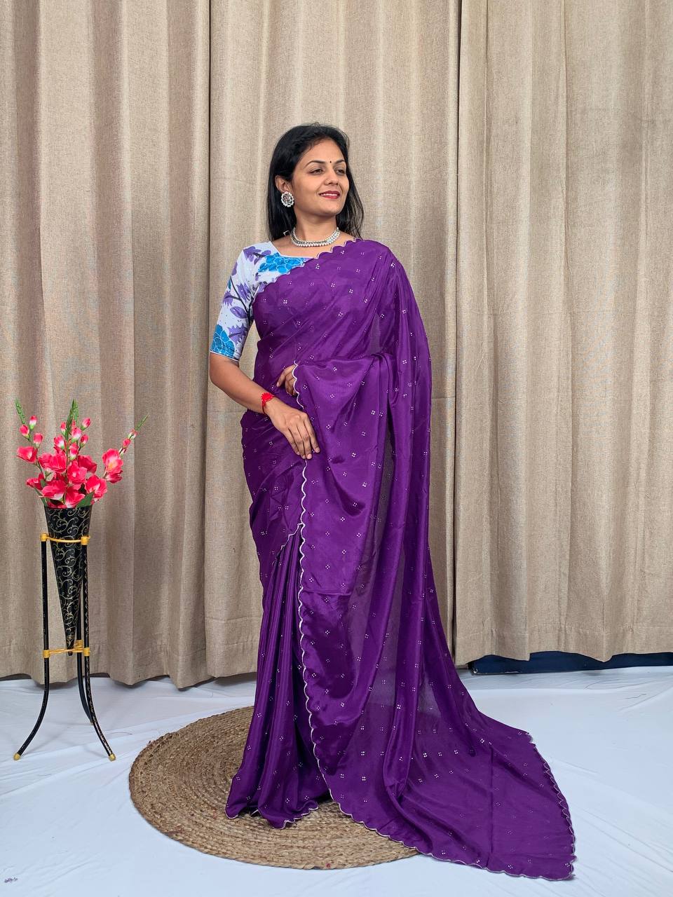 | Pattern | Soft Chinnon Silk Fabric Along With Designer Mukaish Work In Saree & Silver Aarco Border Along With Designer Printed Blouse With Butties Work |