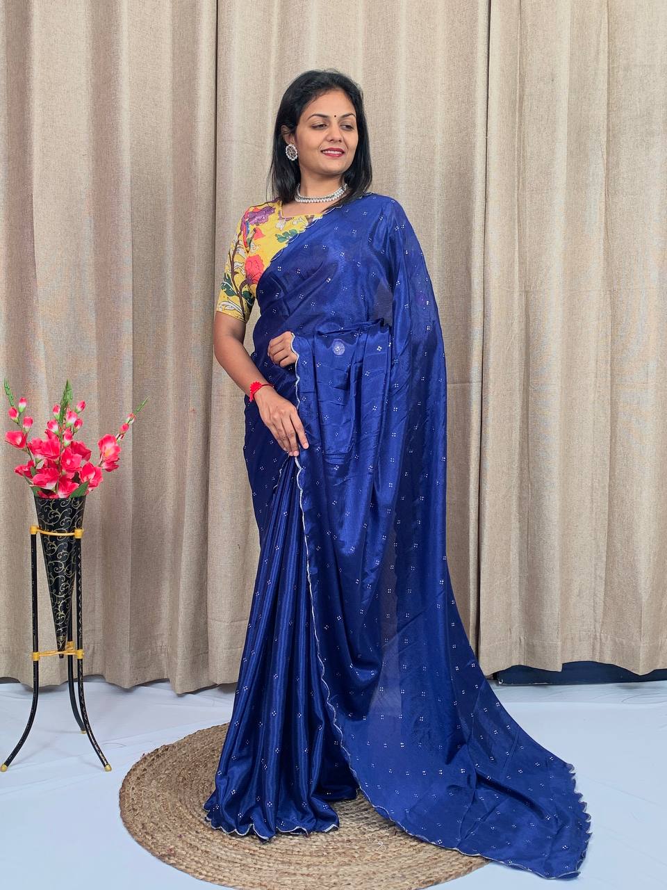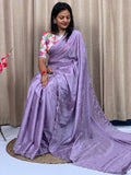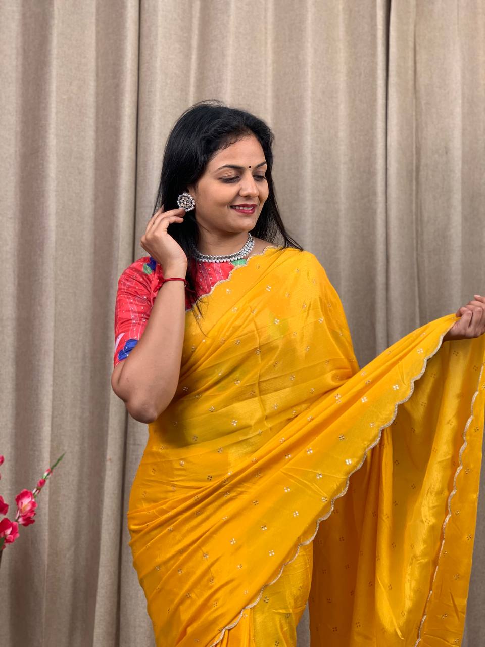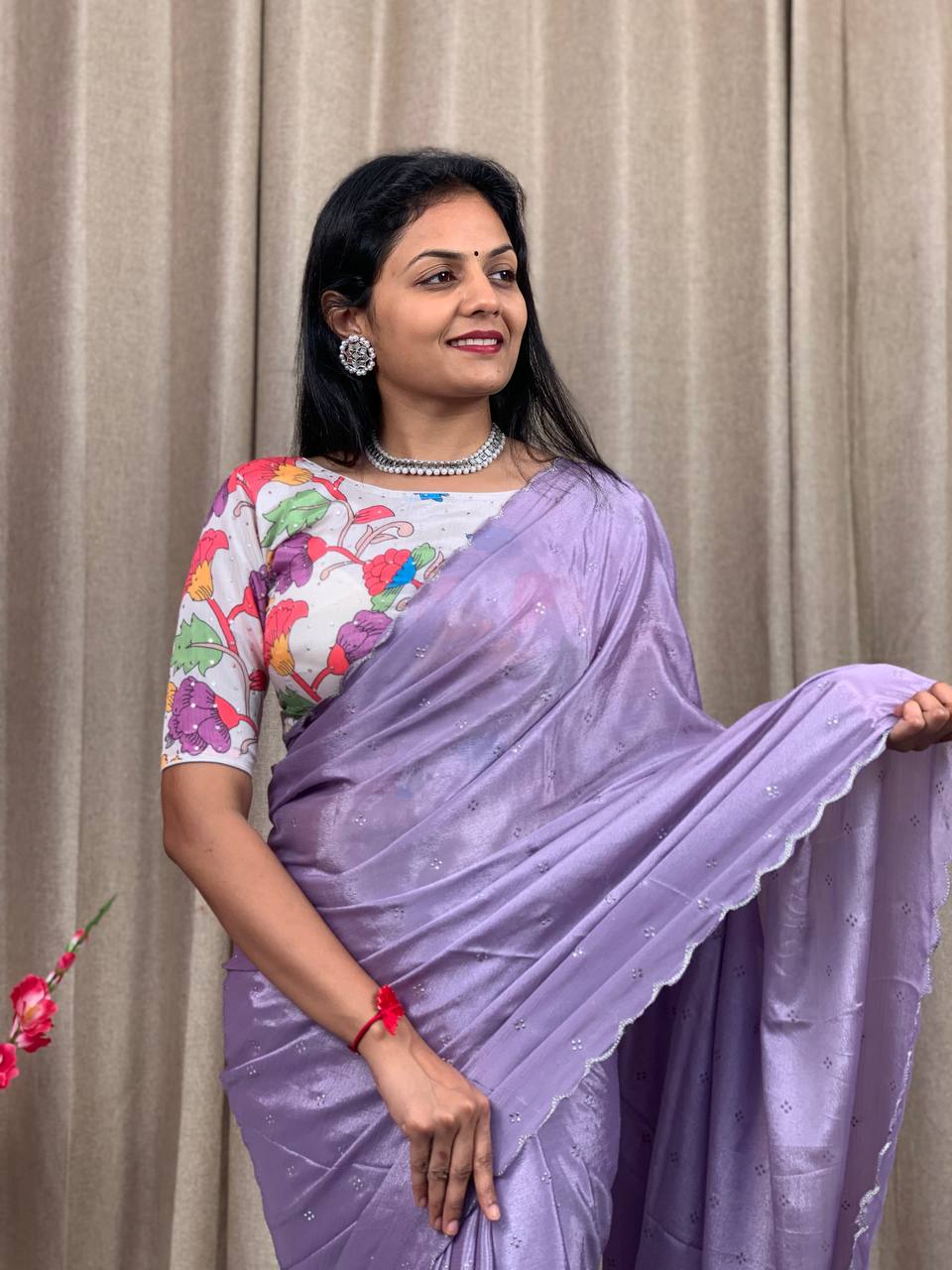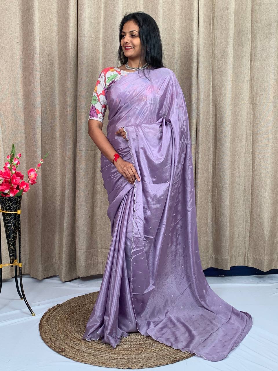 | Pattern | Soft Chinnon Silk Fabric Along With Designer Mukaish Work In Saree & Silver Aarco Border Along With Designer Printed Blouse With Butties Work |