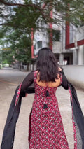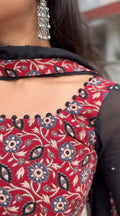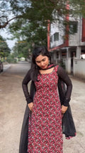 Elegant Kalamkari Printed Kurta Set with Black Dupatta